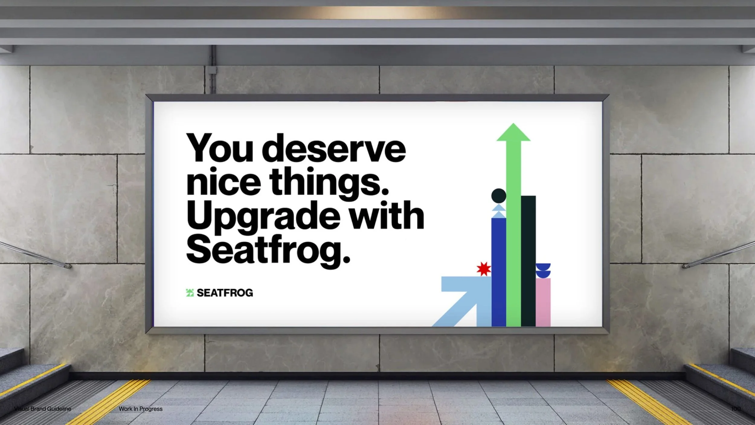 Our strategy was implemented in Seatfrog's 2022 full brand relaunch, which was visible across their website, out-of-home advertising, social marketing, and mobile app. We provided ongoing support for real-time visual and verbal needs, including crafting a conference deck that won "Best Presentation" and attracted potential partners and train operating companies.